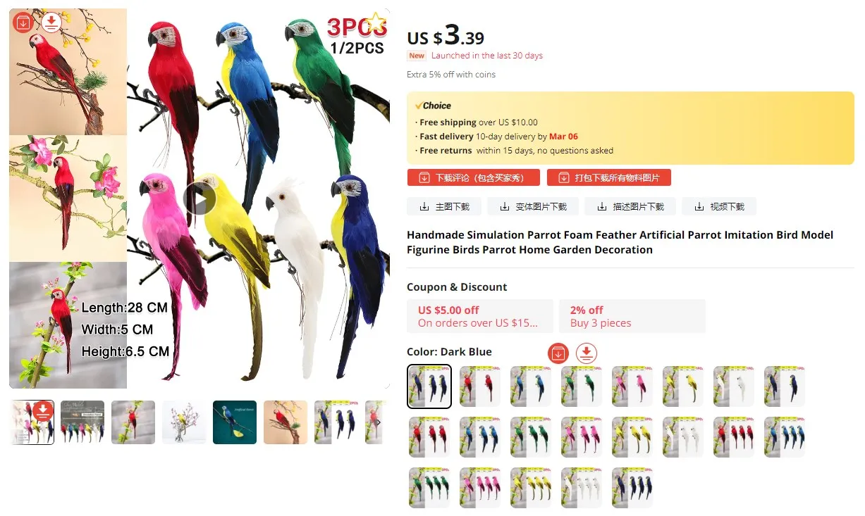 Artificial feather parrot, do not loss hair, do not fade color.