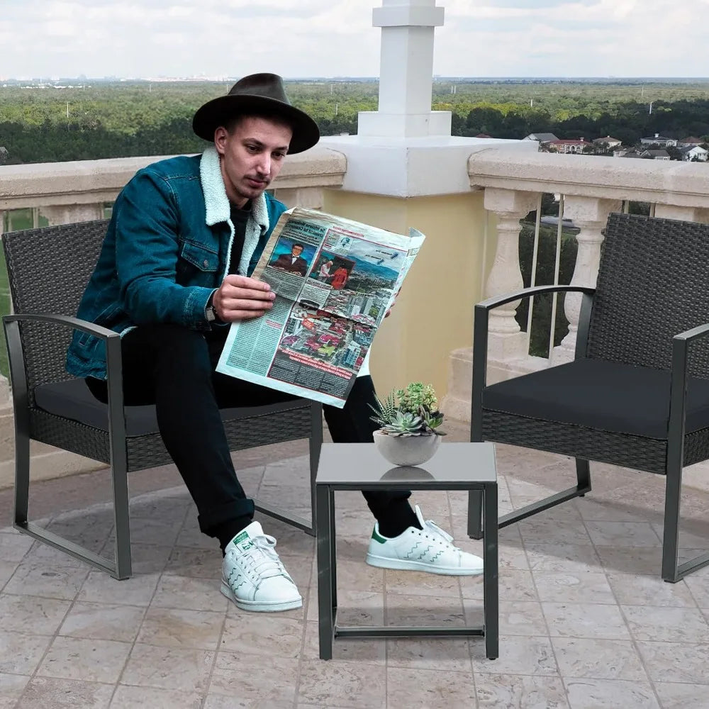 - Modern outdoor patio set with wicker chairs and a coordinating table delivers timeless style and versatile appeal for any outdoor space, from balconies to sunrooms.