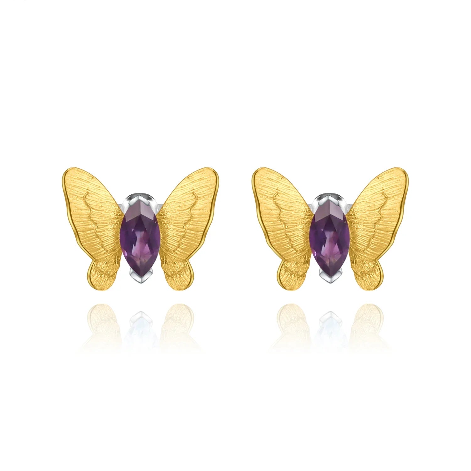 GEM'S BALLET 925 Butterfly Amethyst Stud Earrings Women