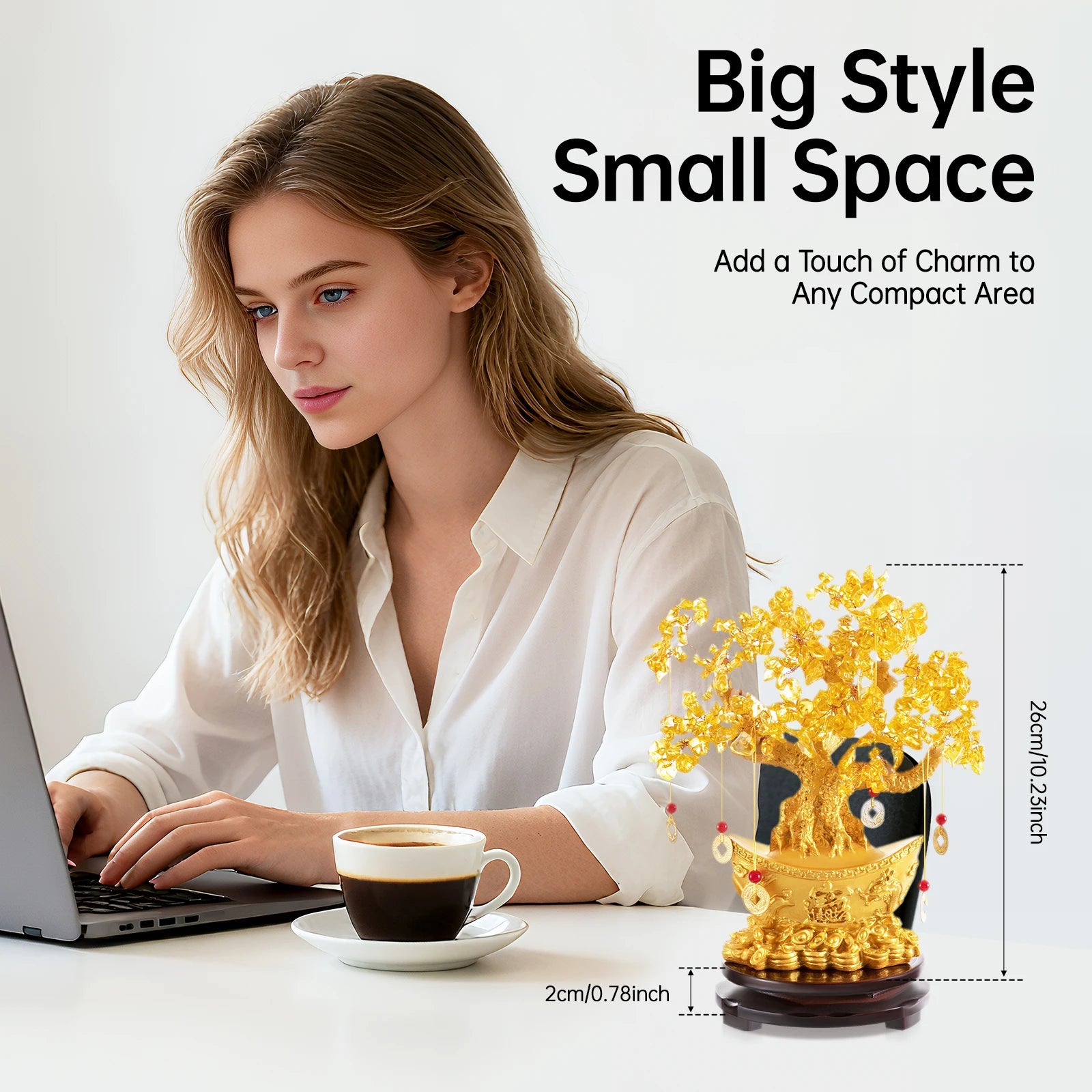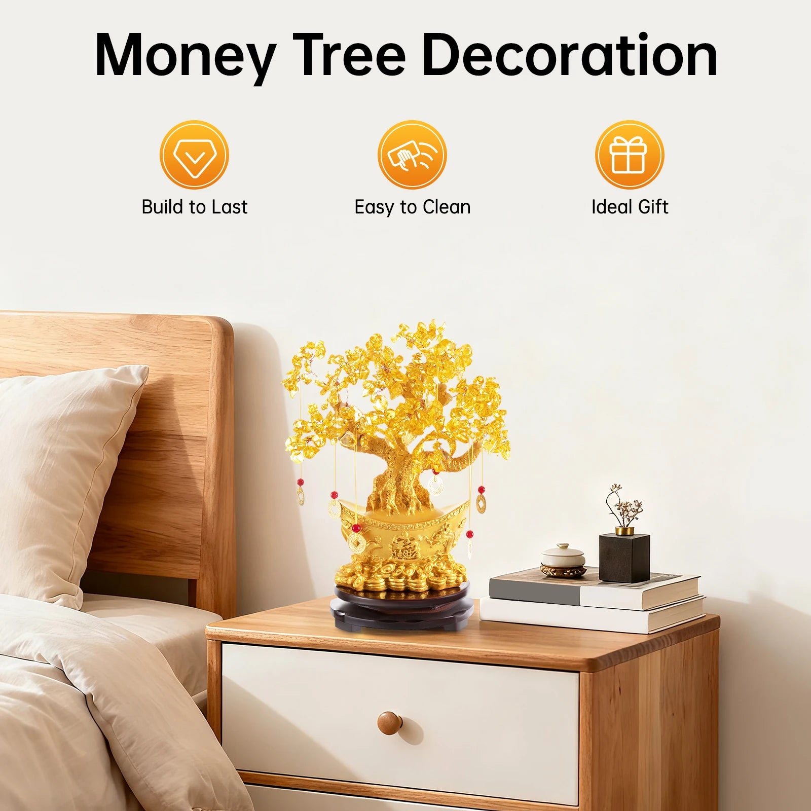 Money Tree Decoration Resin Crystal Desktop Ornament for Feng Shui Luck