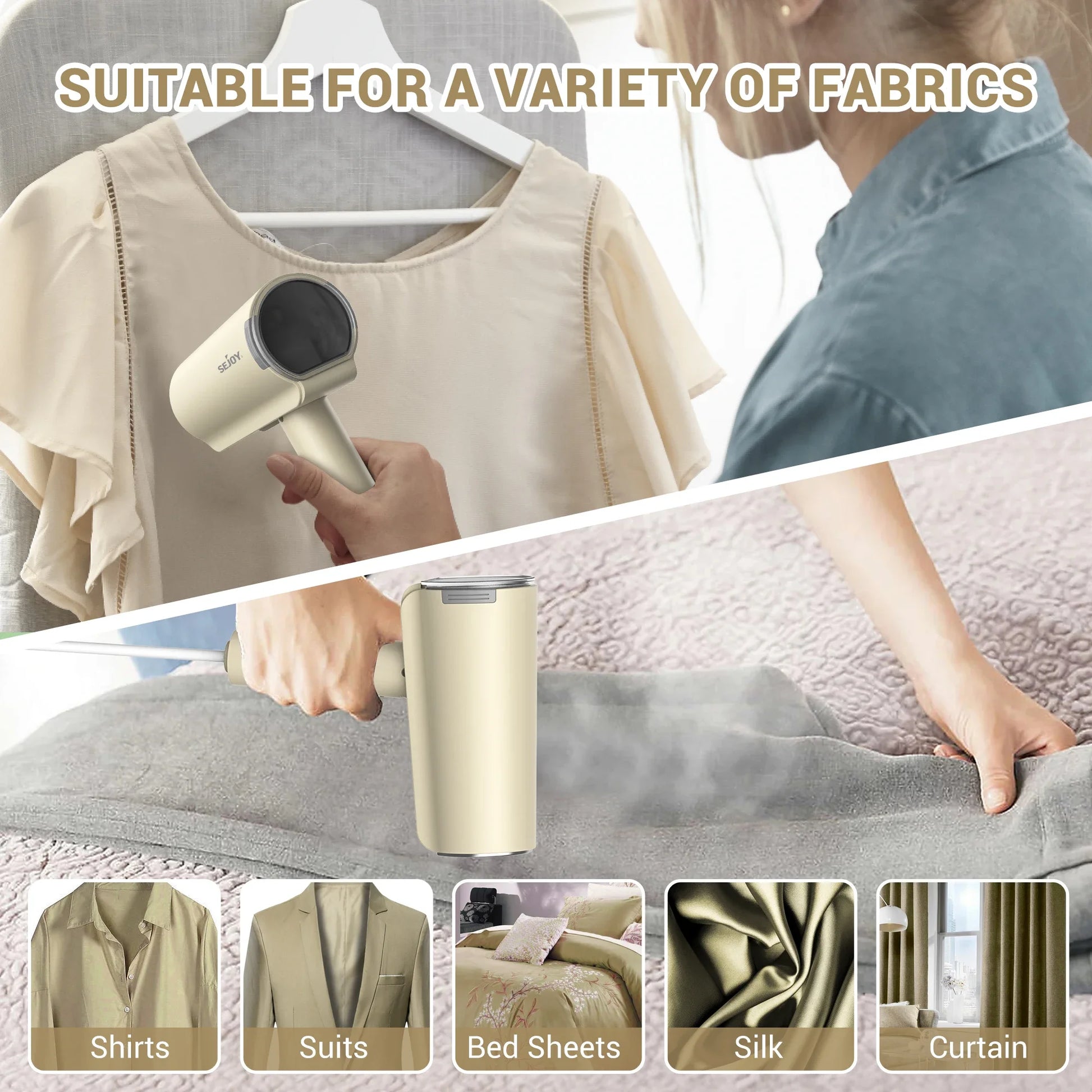 Refresh fabrics quickly and sanitize garments with steam using the Sejoy Electric Hanging Steam Cleaner Garment Steamer.