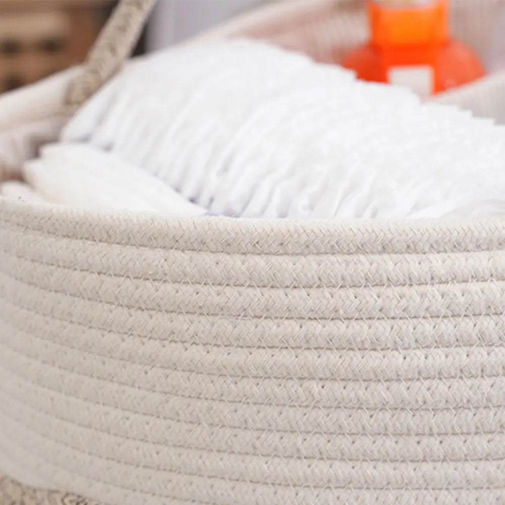 - Cotton-rope-inspired accents add a soft, casual touch to your nursery setup while the basket doubles as portable storage for trips and busy mornings.